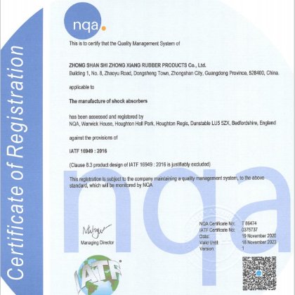 Zhong Xiang Rubber Products Co., Ltd is an ISO9001 and IATF16949 certificated manufacturer, specializing in the production of premium metal bonding rubber products. Providing cutting-edge Vibration & Noise solutions to a diverse range of industrial sectors. These include rail, construction, aerospace, marine, automotive, and defense, where our